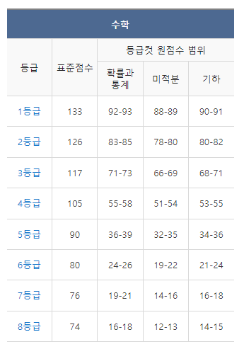 2. 수학 등급컷